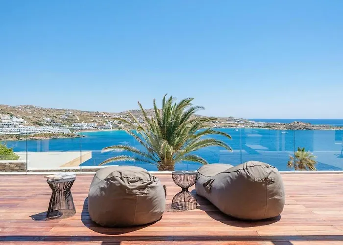 Los huéspedes pueden comer en el restaurante Buddha Bar Beach Mykonos, que está a unos 25 minutos a pie. El aeropuerto Nacional de Míconos está a 5 km de esta villa, y la parada de autobús public está a unos 800 metros.